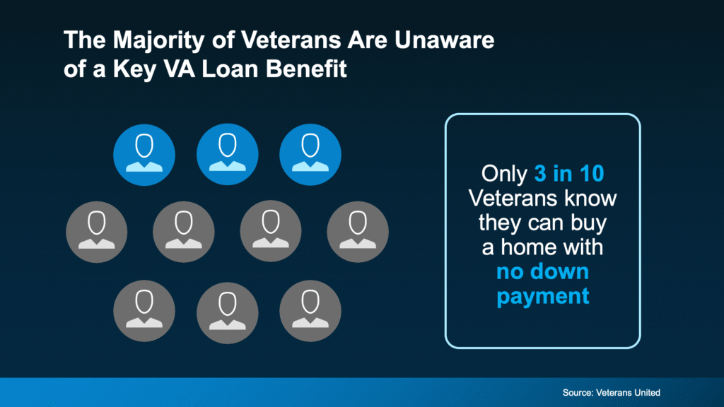 According to a report from Veterans United only 3 in 10 Veterans are aware they may be able to buy a home with no down payment with a VA loan (see visual below):
